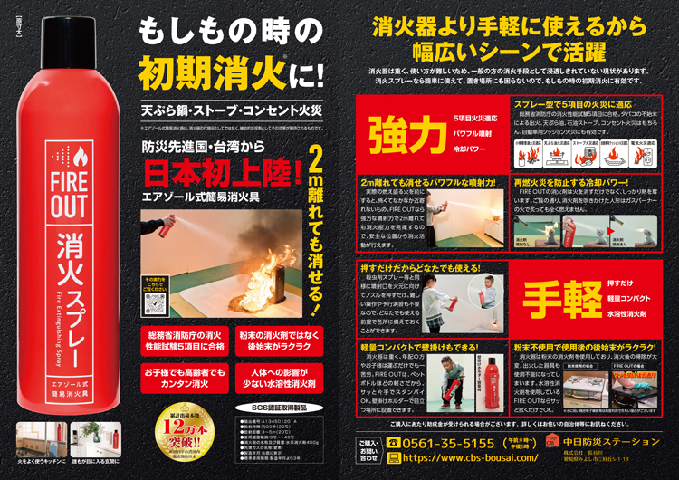 防災先進国・台湾から日本初上陸!初期消火の救世主!FIRE OUT エアゾール式簡易消火具
