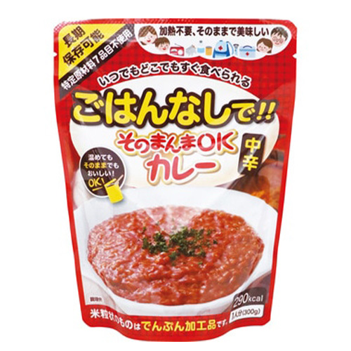 特定原材料7品目を使っていない、そのまんまOKカレー。製造日より5年間の長期保存可能!別途ごはんを用意しなくても、この袋1つで美味しいカレーが楽しめます。